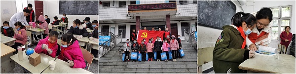 在阅读分享和化学实验环节,志愿者们通过互动参与等形式将防疫物品及学习用品等礼物送到了孩子们手中。